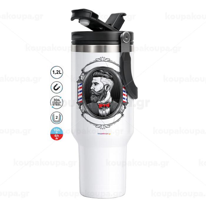 Barber shop, Mega Stainless steel Tumbler with lid, double wall 1,2L