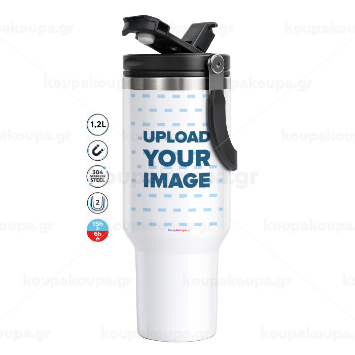 Upload your logo, Mega Stainless steel Tumbler with lid, double wall 1,2L