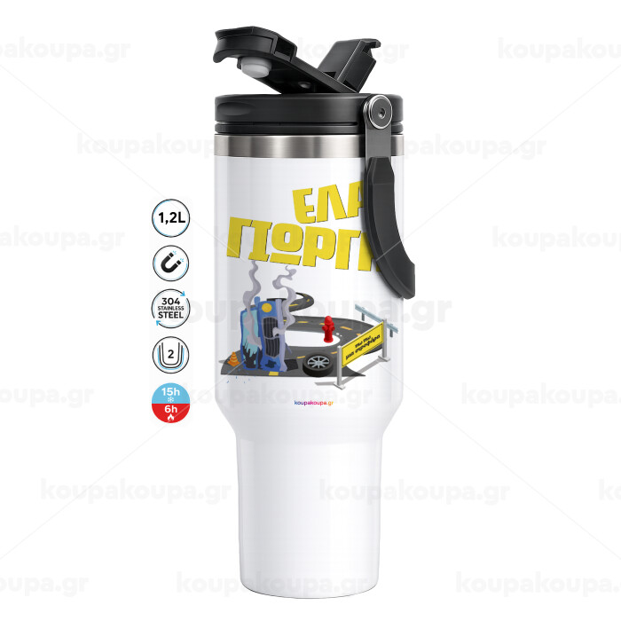 Έλα Γιώργη, πω πω μια στροφάρα, Mega Stainless steel Tumbler with lid, double wall 1,2L
