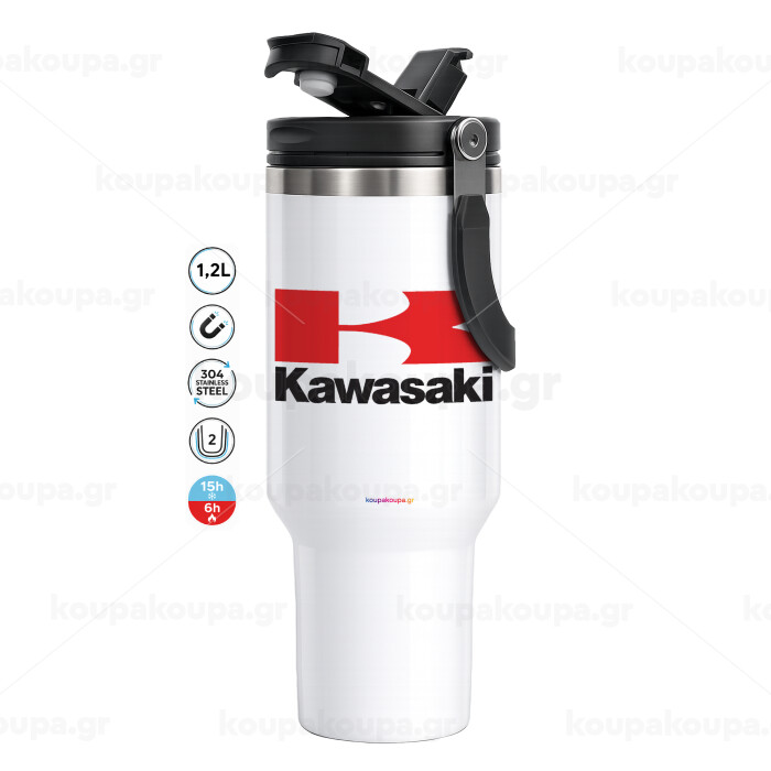 Kawasaki, Mega Stainless steel Tumbler with lid, double wall 1,2L