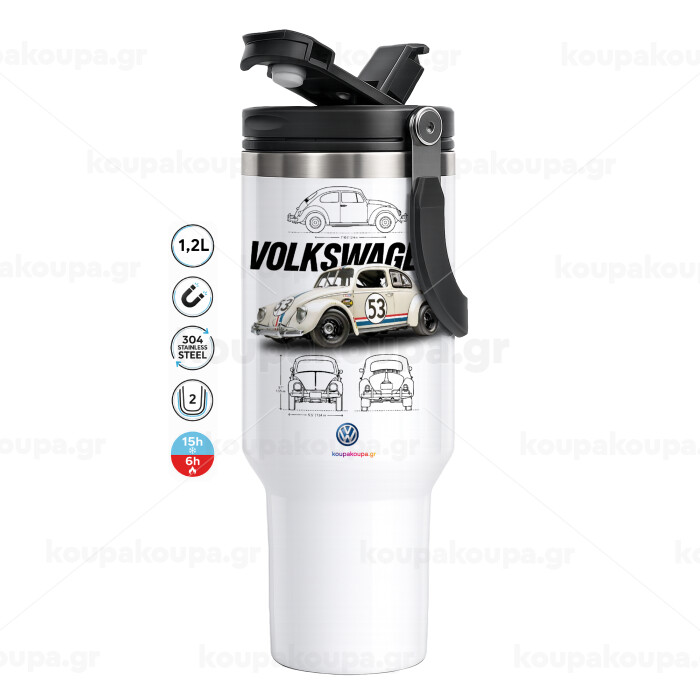 Volkswagen Beetle, Mega Stainless steel Tumbler with lid, double wall 1,2L