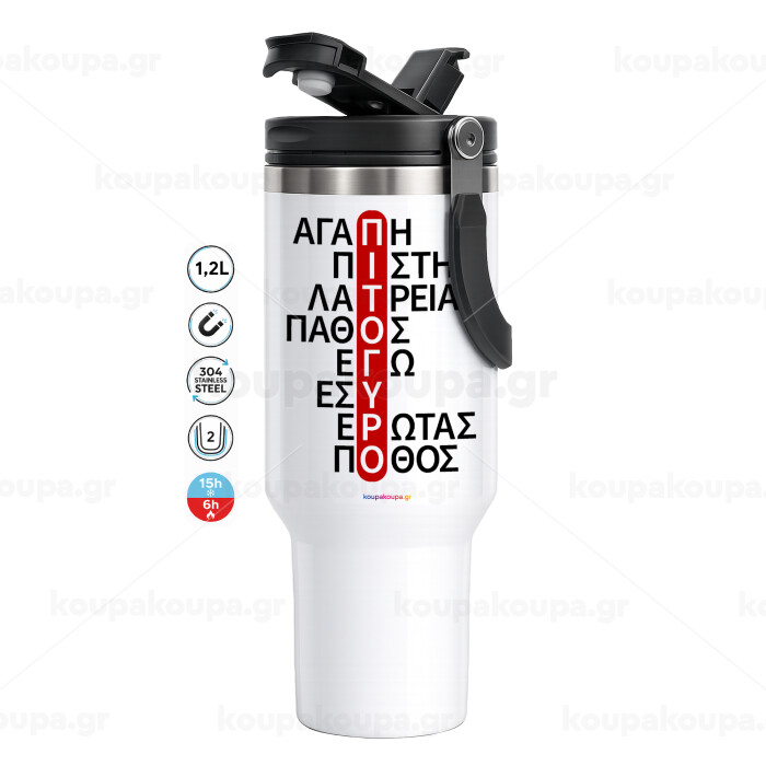 Πιτόγυρο πόθος, Mega Stainless steel Tumbler with lid, double wall 1,2L