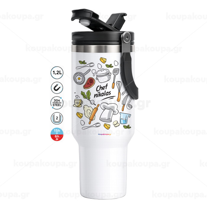 Chef με όνομα, Mega Stainless steel Tumbler with lid, double wall 1,2L