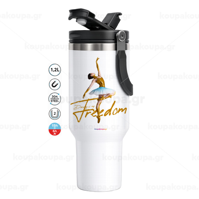 Gold Dancer, Mega Stainless steel Tumbler with lid, double wall 1,2L