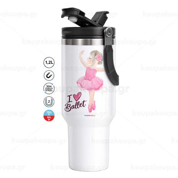 I Love Ballet, Mega Stainless steel Tumbler with lid, double wall 1,2L