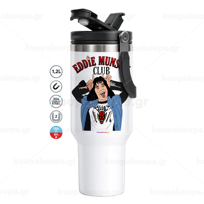 Eddie Munson, Mega Stainless steel Tumbler with lid, double wall 1,2L