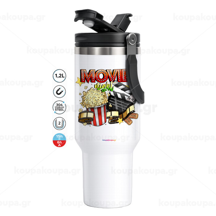 Movie night, Mega Stainless steel Tumbler with lid, double wall 1,2L