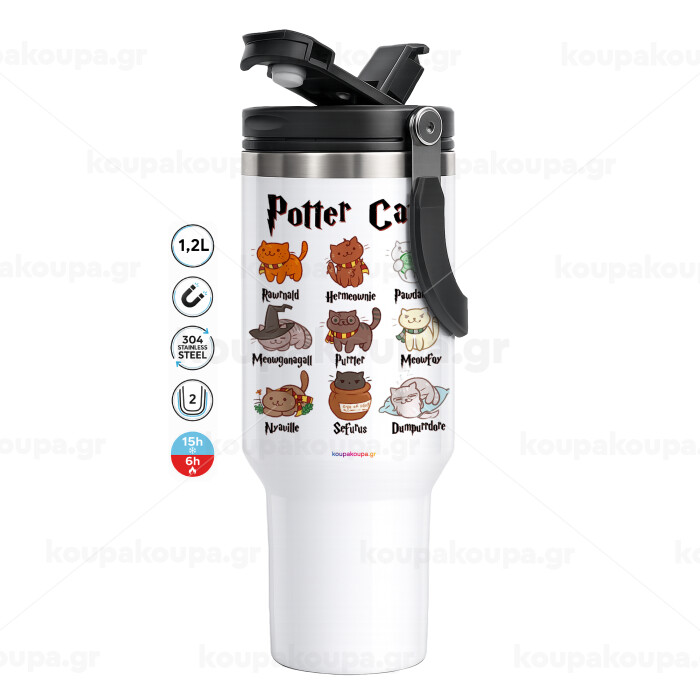 Potter Cats, Mega Stainless steel Tumbler with lid, double wall 1,2L