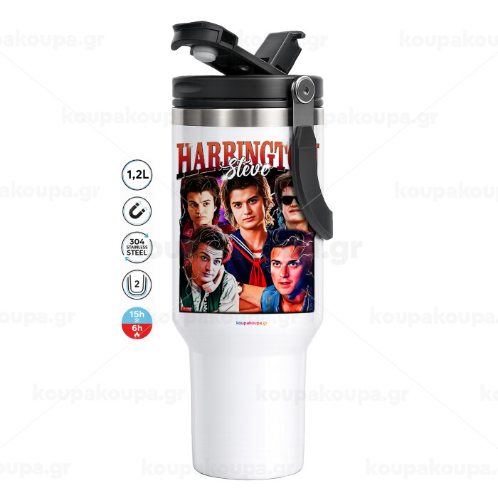 Steve Harrington, Stranger Things, Mega Stainless steel Tumbler with lid, double wall 1,2L