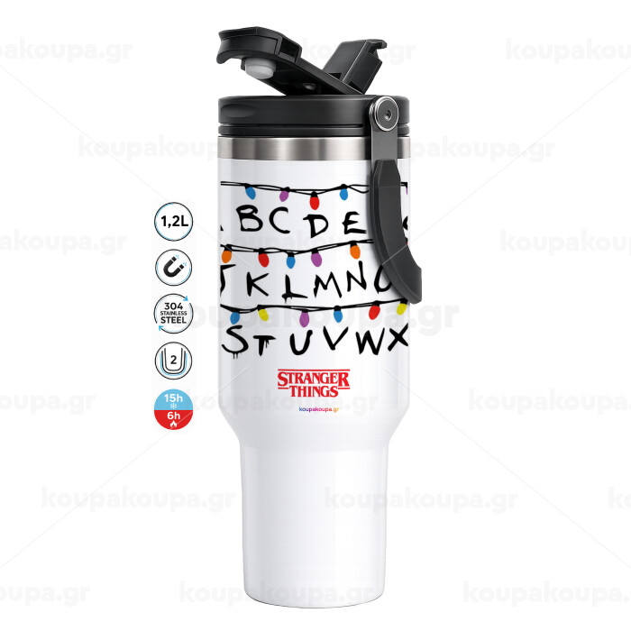 Stranger Things ABC, Mega Stainless steel Tumbler with lid, double wall 1,2L