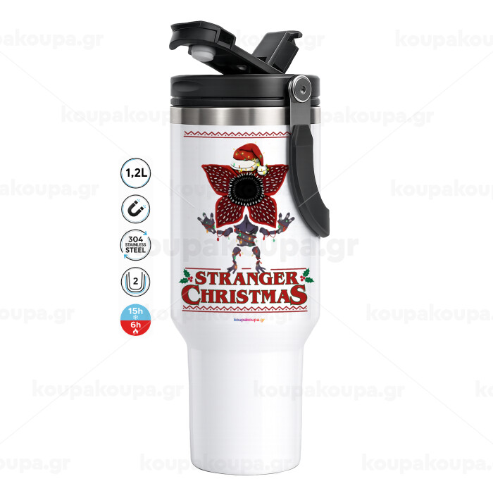 Stranger Things Christmas, Mega Stainless steel Tumbler with lid, double wall 1,2L