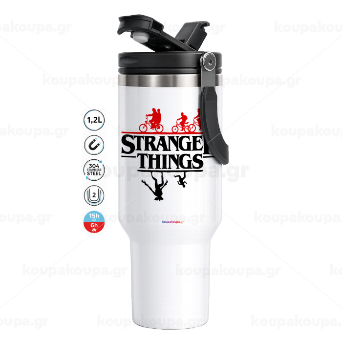 Stranger Things upside down, Mega Stainless steel Tumbler with lid, double wall 1,2L