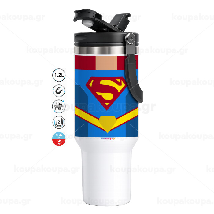 Superman flat, Mega Stainless steel Tumbler with lid, double wall 1,2L