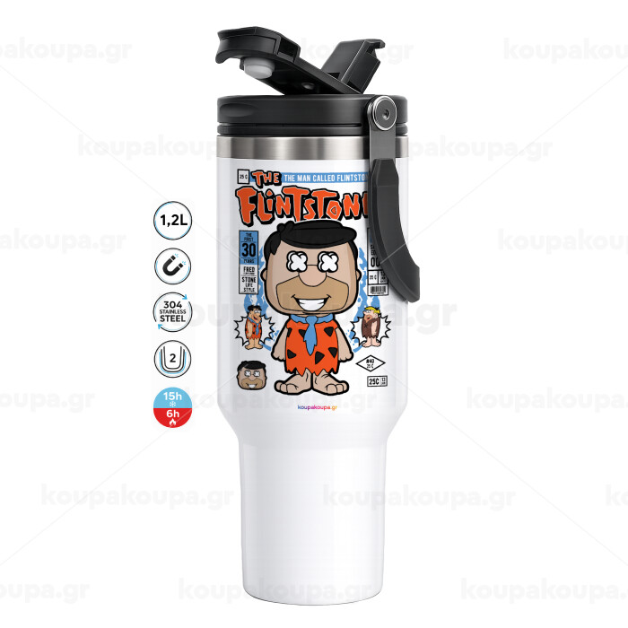 The flintstones, Mega Stainless steel Tumbler with lid, double wall 1,2L