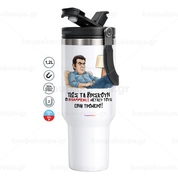 Κούλα μ΄ακούς;, Mega Stainless steel Tumbler with lid, double wall 1,2L