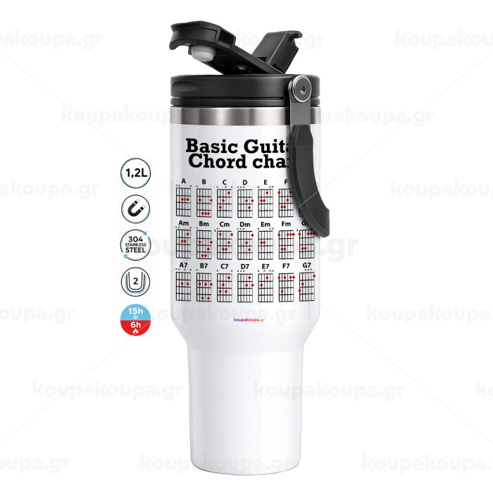Guitar tabs, Mega Stainless steel Tumbler with lid, double wall 1,2L