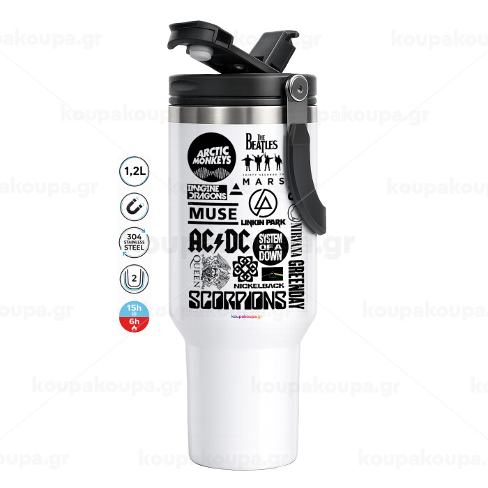 Best Rock Bands Collection, Mega Stainless steel Tumbler with lid, double wall 1,2L
