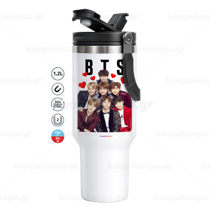 BTS hearts, Mega Stainless steel Tumbler with lid, double wall 1,2L