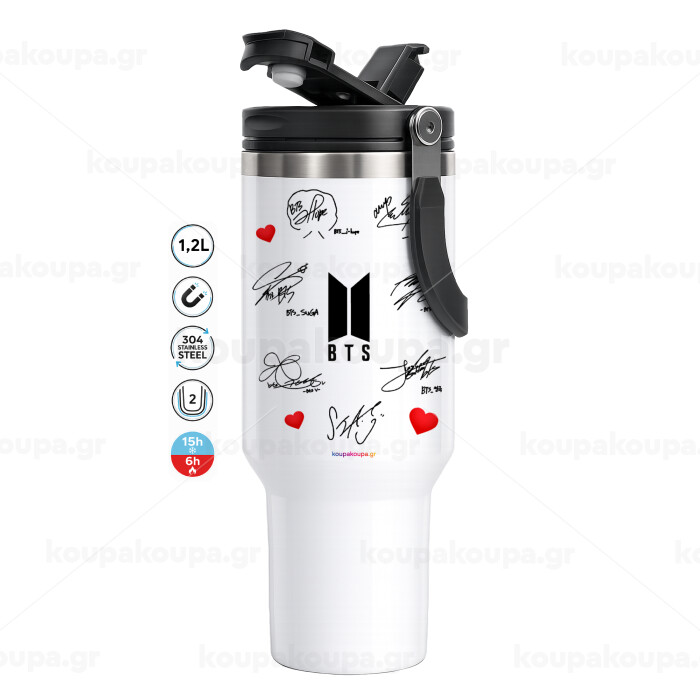 BTS signatures, Mega Stainless steel Tumbler with lid, double wall 1,2L