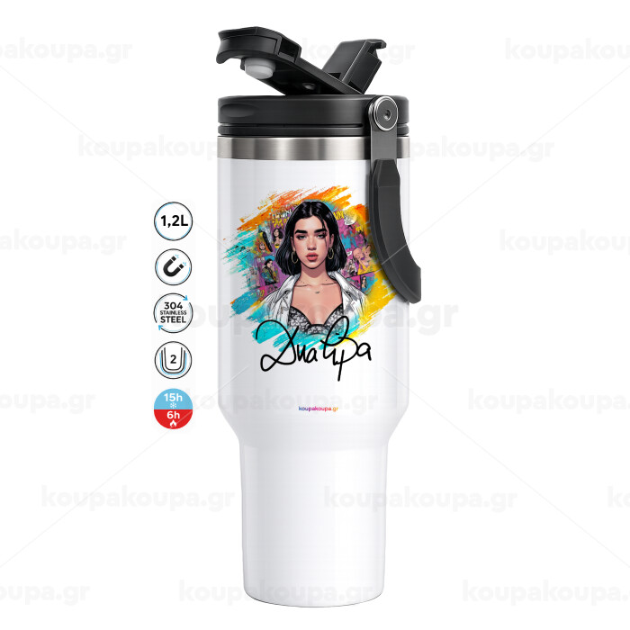 Dua lipa, Mega Stainless steel Tumbler with lid, double wall 1,2L