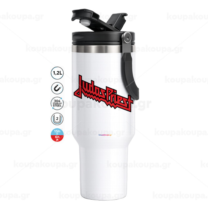 Judas Priest, Mega Stainless steel Tumbler with lid, double wall 1,2L