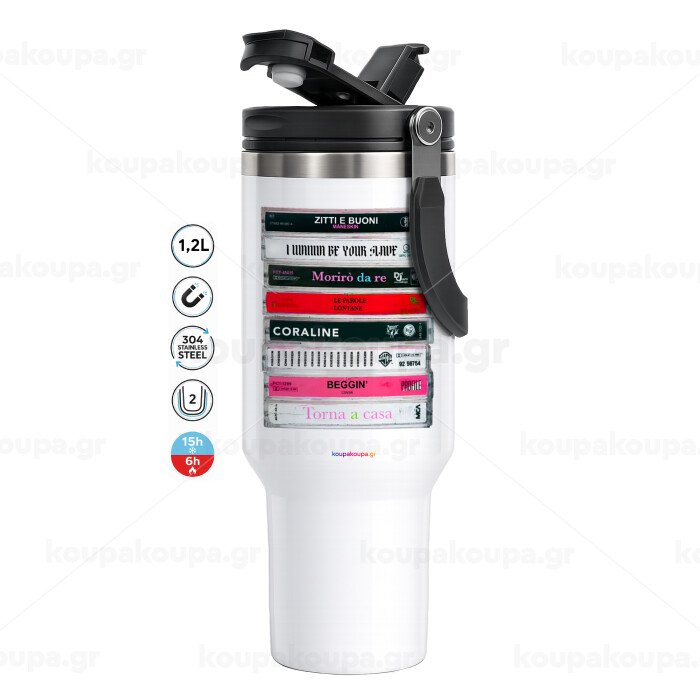 Maneskin Cassette, Mega Stainless steel Tumbler with lid, double wall 1,2L