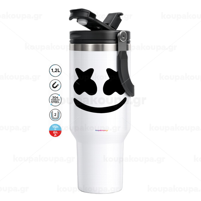 Marshmello, Mega Stainless steel Tumbler with lid, double wall 1,2L