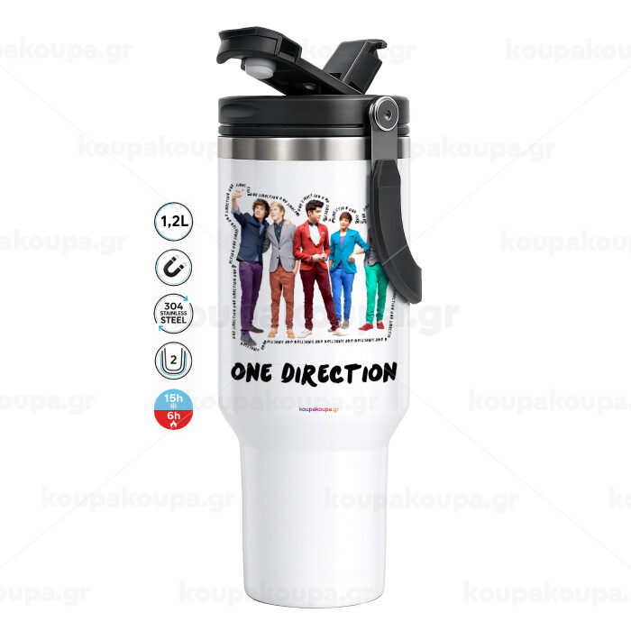 One Direction , Mega Stainless steel Tumbler with lid, double wall 1,2L