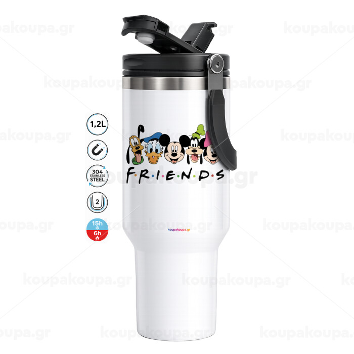 Friends characters, Mega Stainless steel Tumbler with lid, double wall 1,2L