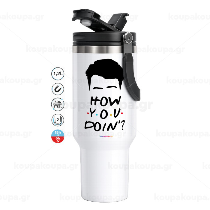 Friends how you doin?, Mega Stainless steel Tumbler with lid, double wall 1,2L