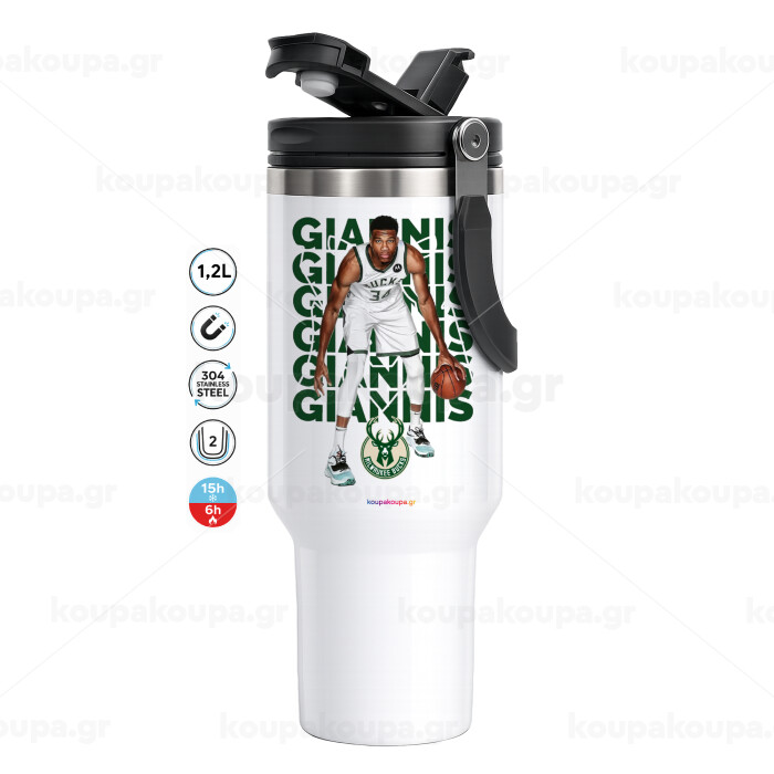 Giannis Antetokounmpo, Mega Stainless steel Tumbler with lid, double wall 1,2L