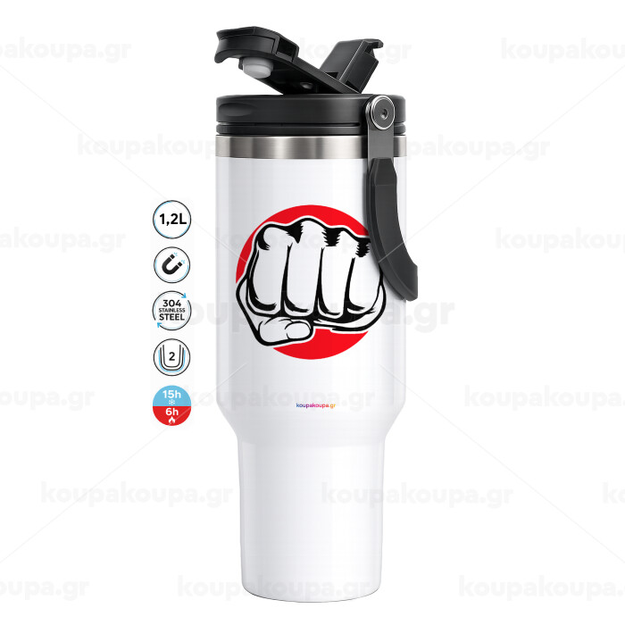 Μπαρτζό, Ποιος? Αυτός!!! 1-0, Mega Stainless steel Tumbler with lid, double wall 1,2L