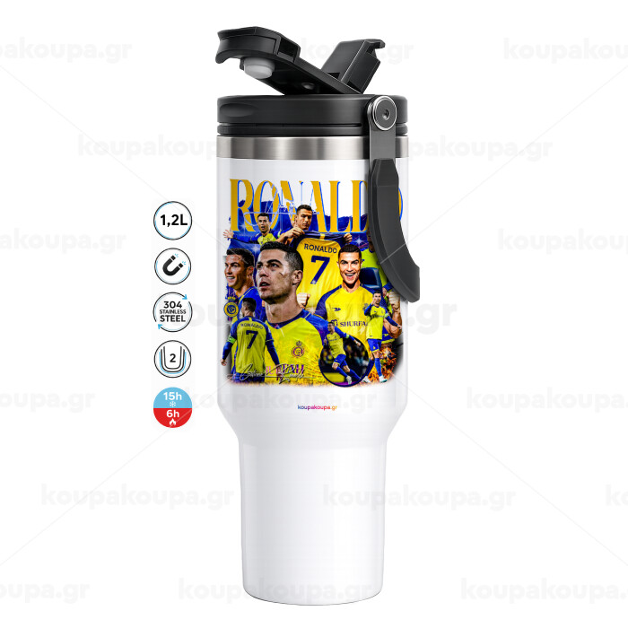 Cristiano Ronaldo (Κριστιάνο Ρονάλντο), Mega Stainless steel Tumbler with lid, double wall 1,2L