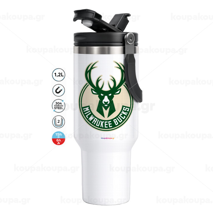 Milwaukee bucks, Mega Stainless steel Tumbler with lid, double wall 1,2L