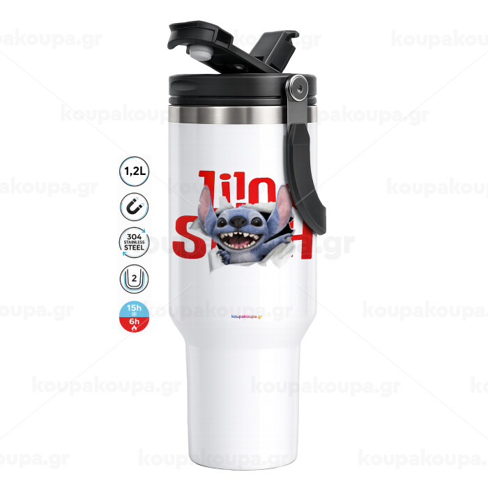Stitch movie, Mega Stainless steel Tumbler with lid, double wall 1,2L