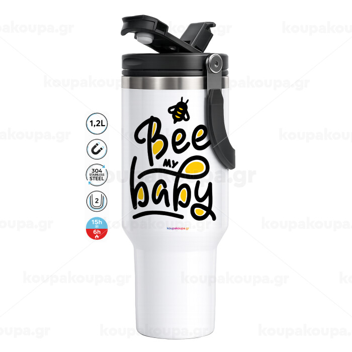 Bee my BABY!!!, Mega Stainless steel Tumbler with lid, double wall 1,2L