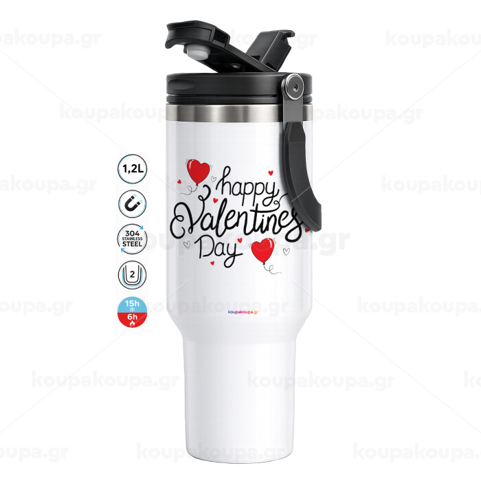 Happy Valentines Day!!!, Mega Stainless steel Tumbler with lid, double wall 1,2L