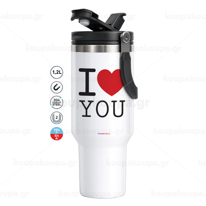 I Love you classic, Mega Stainless steel Tumbler with lid, double wall 1,2L