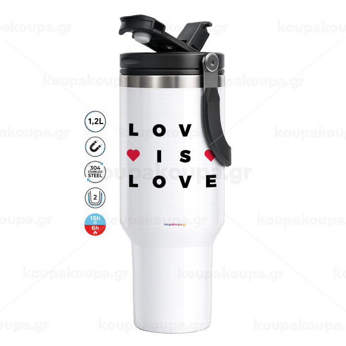 Love is Love, Mega Stainless steel Tumbler with lid, double wall 1,2L