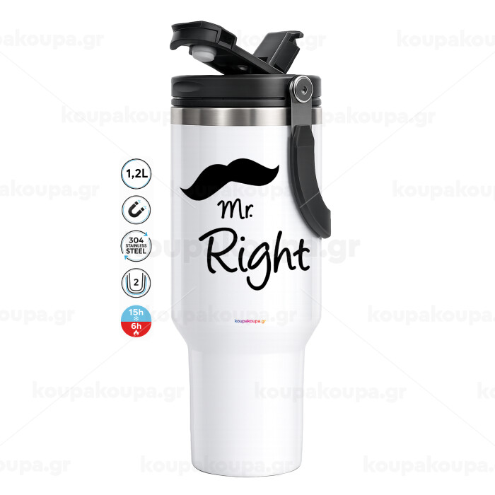 Mr right Mustache, Mega Stainless steel Tumbler with lid, double wall 1,2L