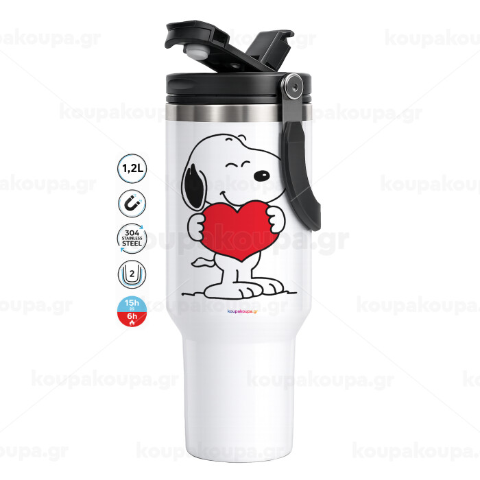 Snoopy takemy heart, Mega Stainless steel Tumbler with lid, double wall 1,2L