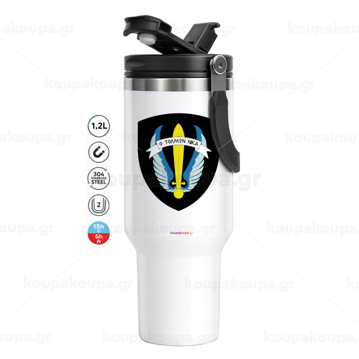Έμβλημα Μονάδων Καταδρομών Ο Τολμων Νικα - Λοκ, Mega Stainless steel Tumbler with lid, double wall 1,2L