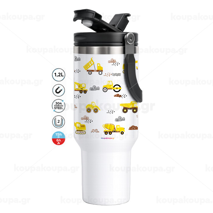 Car construction, Mega Stainless steel Tumbler with lid, double wall 1,2L