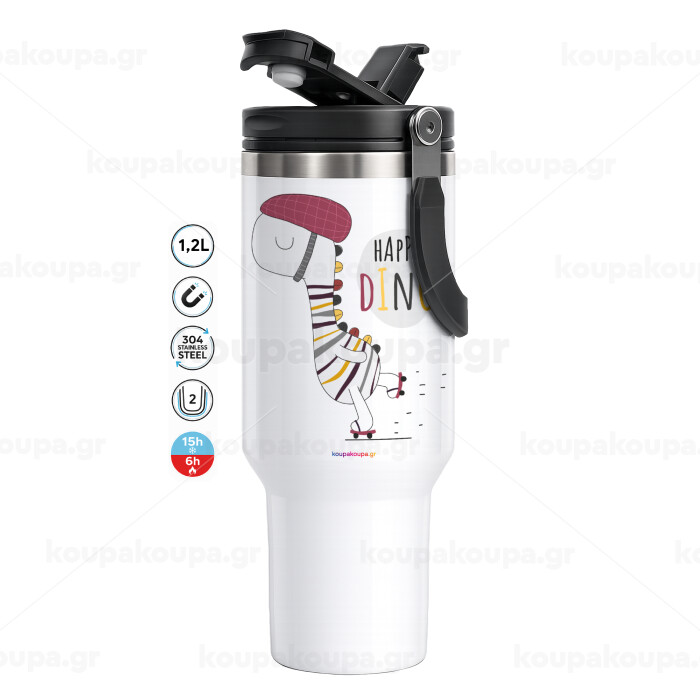 Happy Dino, Mega Stainless steel Tumbler with lid, double wall 1,2L