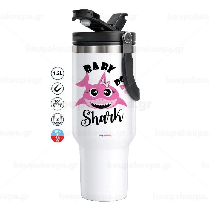 Daddy Shark (με ονόματα παιδικά), Mega Stainless steel Tumbler with lid, double wall 1,2L