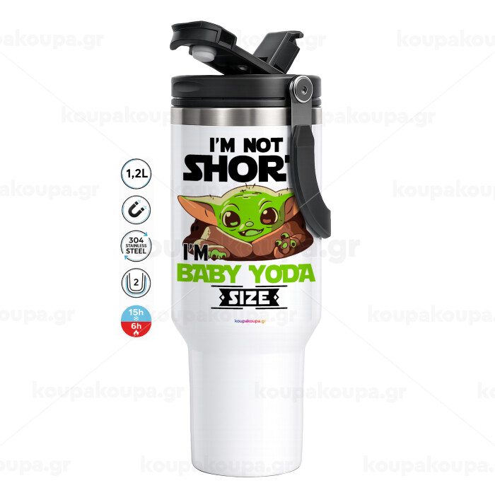 I'm not short, i'm Baby Yoda size, Mega Stainless steel Tumbler with lid, double wall 1,2L
