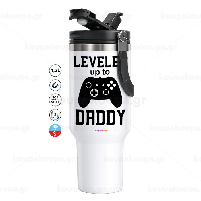 Leveled to Daddy, Mega Stainless steel Tumbler with lid, double wall 1,2L