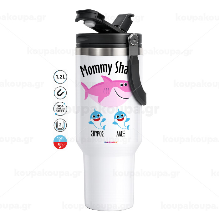 Mommy Shark (με ονόματα παιδικά), Mega Stainless steel Tumbler with lid, double wall 1,2L