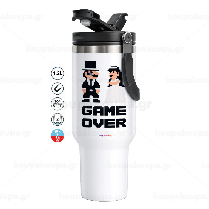 8bit Game Over Couple Wedding, Mega Stainless steel Tumbler with lid, double wall 1,2L