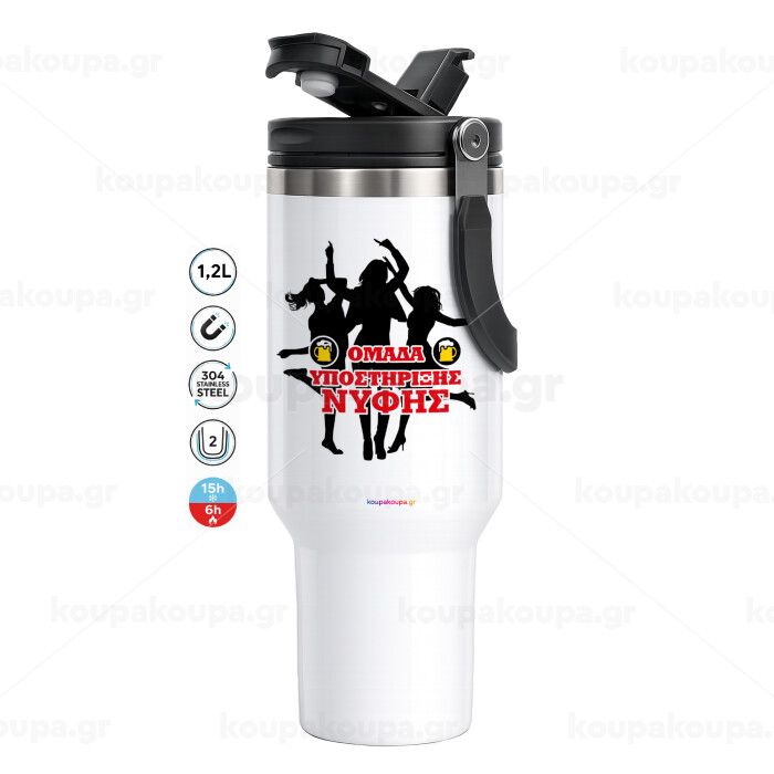 Bachelor Ομάδα υποστήριξης Νύφης, Mega Stainless steel Tumbler with lid, double wall 1,2L